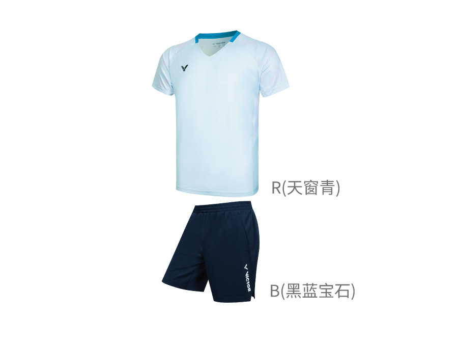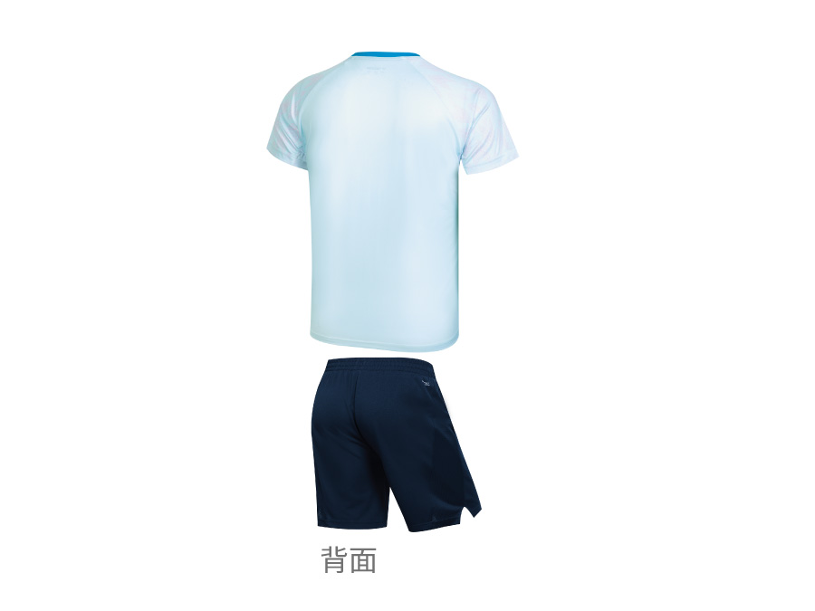 针织T恤:100%聚酯纤维;针织运动短裤:100%聚酯纤维